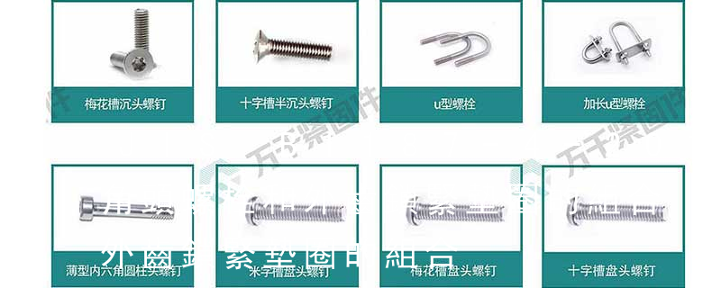 名稱: 1.機螺釘 2.自攻螺釘 3.鉆尾螺釘 4.墻板釘 5.纖維板釘 6.木螺釘7.六角木螺釘 8.不脫出螺釘 9.組合螺釘 10.微型螺釘 11.家具螺釘 12.電子螺釘 頭型: 1.六角頭(hexagon head) 2.六角頭法蘭面(hexagon head with fla