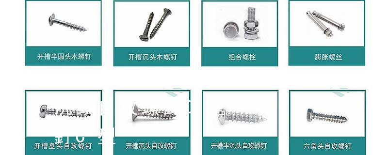 (鐵板牙自攻螺絲) B-2: Plastic Tapping Screw. (塑膠用,自攻螺絲) C: Wooden Screw : 木工螺絲 D: Drywall Screw :水泥墻螺絲 E: Self Drilling Screws鉆尾螺絲(不銹鋼鉆尾螺絲,復合材料鉆尾螺絲) F:膨脹螺絲,四片膨脹螺絲又