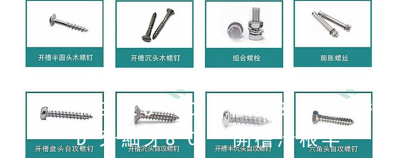 (鐵板牙自攻螺絲) B-2: Plastic Tapping Screw. ( 塑料用, 自攻螺絲) C: Wooden Screw : 木工螺絲 D: Drywall Screw : 水泥墻螺絲 E: Self Drilling Screws 鉆尾螺絲(不銹鋼鉆尾螺絲,復合材料鉆尾螺絲) E-1:STAINLESS