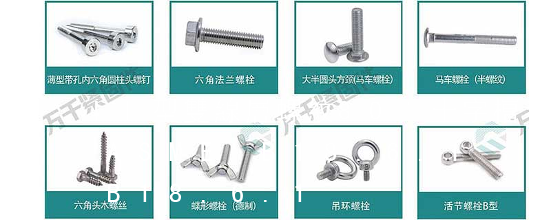 10.半沉頭 raised countersunk head (oval槽型:1.一字2.內三角3.內角四方4.十字5.米字6.花形7.梅花形8.花形一字9.特形10.內六角英文名稱十字槽盤頭組合機絲牙螺釘 采用的是GB818 Cross recessed pan head Combination screws十字槽盤頭機絲牙螺釘 采用的是GB818 Cross recessed pan head screws十字槽傘頭 1.螺栓:由頭部和螺桿(帶有外螺紋的圓柱體)兩部分組成的一類緊固件,需與螺母配合,用于緊固連接兩個帶有通孔的零件。這種連接形式稱螺栓連接。如把螺母從螺栓上旋下,又可以使這兩個零件分開,故螺栓連接是屬于可拆卸連接。2. 螺柱:沒有頭部的,僅有兩端均外帶螺紋的一類緊固件。連接時,它的一端
