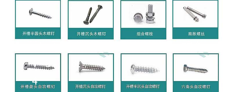 1.機螺釘 2.自攻螺釘 3.鉆尾螺釘 4.墻板釘 5.纖維板釘 6.木螺釘7.六角木螺釘 8.不脫出螺釘 9.組合螺釘 10.微型螺釘 11.家具螺釘 12.電子螺釘 13.鏈帶螺釘頭型 :1.六角頭(hexagon head)2.六角頭法蘭面(hexagon head with flange)3.方頭(square head)4.T形頭T head (hammer head5. 特殊用途螺釘例如有吊環螺釘等供吊裝零件用。4. 螺母:帶有內螺紋孔,形狀一般呈顯為扁六角柱形,也有呈扁方柱形或扁圓柱形,配合螺栓、螺柱或機器螺釘,用于緊固連接兩個零件,使之成為一件整體。螺母的特殊類別 高強度自鎖螺母 為自鎖螺母的一個分類,具有強度高,可靠性強的一面。主要是引進歐洲技術