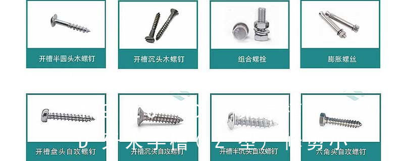 (鐵板牙自攻螺絲) B-2: Plastic Tapping Screw. (塑膠用,自攻螺絲) C: Wooden Screw : 木工螺絲 D: Drywall Screw :水泥墻螺絲 E: Self Drilling Screws鉆尾螺絲(不銹鋼鉆尾螺絲,復合材料鉆尾螺絲) F:膨脹螺絲,四片膨脹螺絲又