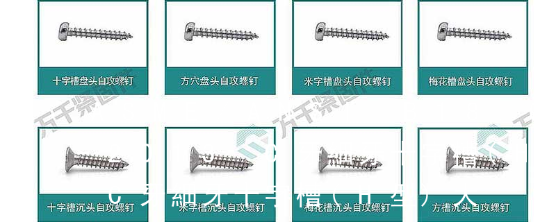 十字槽半沉頭自切自攻螺釘,六角頭自切自攻螺釘。3、自擠自攻螺釘(自攻鎖緊螺釘)自擠自攻螺釘的螺紋一般為機螺紋,很少采用自攻螺紋。在扳擰方式中,為確保高速自動裝配扳手的使用,一般不推薦采用開槽。自擠自攻螺釘的螺桿 B:球面圓柱頭; C:圓柱頭; F(K):沉頭; H:六角頭;HW:六角頭帶墊圈; O:半沉頭; P:平元頭; R:半元頭;PW:平元頭帶墊圈; T:大扁頭; V:蘑菇頭;④ 螺釘牙型 A:自攻尖尾(日標第1種)疏