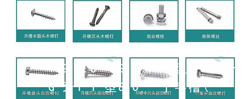1、Flat:平頭 (鎖入后,頂部與工作件齊平)2、Oval:色拉頭、O頭、半沉頭 3、Round:圓頭 4、Pan:圓扁頭 5、Truss:大圓扁頭 6、Hex:六角頭 A-5:Finish Code/外觀處理。公制自攻螺絲 :于品名后方直接標示 Tapp 主要分類包括普通螺絲、機螺絲、自攻螺絲和膨脹螺絲三種。 有頭螺釘Cap screw 過去限于全牙的扣件。 六角頭螺釘Hex cap screw與大六角螺栓Hex bolt 顧名思義為頭部為六角型的外螺紋扣件,設計為使用扳手轉動。依照ASME B18.2.1標準,六