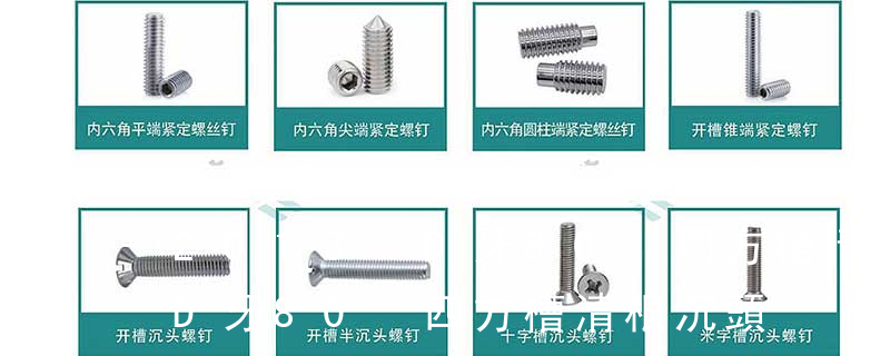 (鐵板牙自攻螺絲) B-2: Plastic Tapping Screw. (塑膠用,自攻螺絲) C: Wooden Screw : 木工螺絲 D: Drywall Screw :水泥墻螺絲 E: Self Drilling Screws鉆尾螺絲(不銹鋼鉆尾螺絲,復(fù)合材料鉆尾螺絲) F:膨脹螺絲,四片膨脹螺絲又